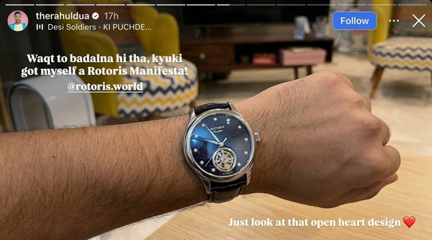 Comedian and content creator Rahul Dua brought fresh attention to the Manifesta this week through an Instagram story that was notable for its specificity and enthusiasm. Dua identified the model by name, tagged the brand, and directed his audience's attention to the open heart complication, a design feature that exposes the mechanical movement through the dial.