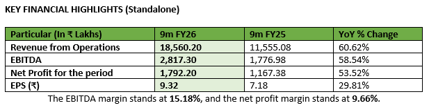 "The Company delivered strong revenue and profit growth during 9M FY26, supported by consistent project execution and operational discipline. With an order book of over ₹418 crore providing 24-30 months of revenue visibility and a qualified bid pipeline exceeding ₹1,000 crore, we remain well positioned for sustainable growth.